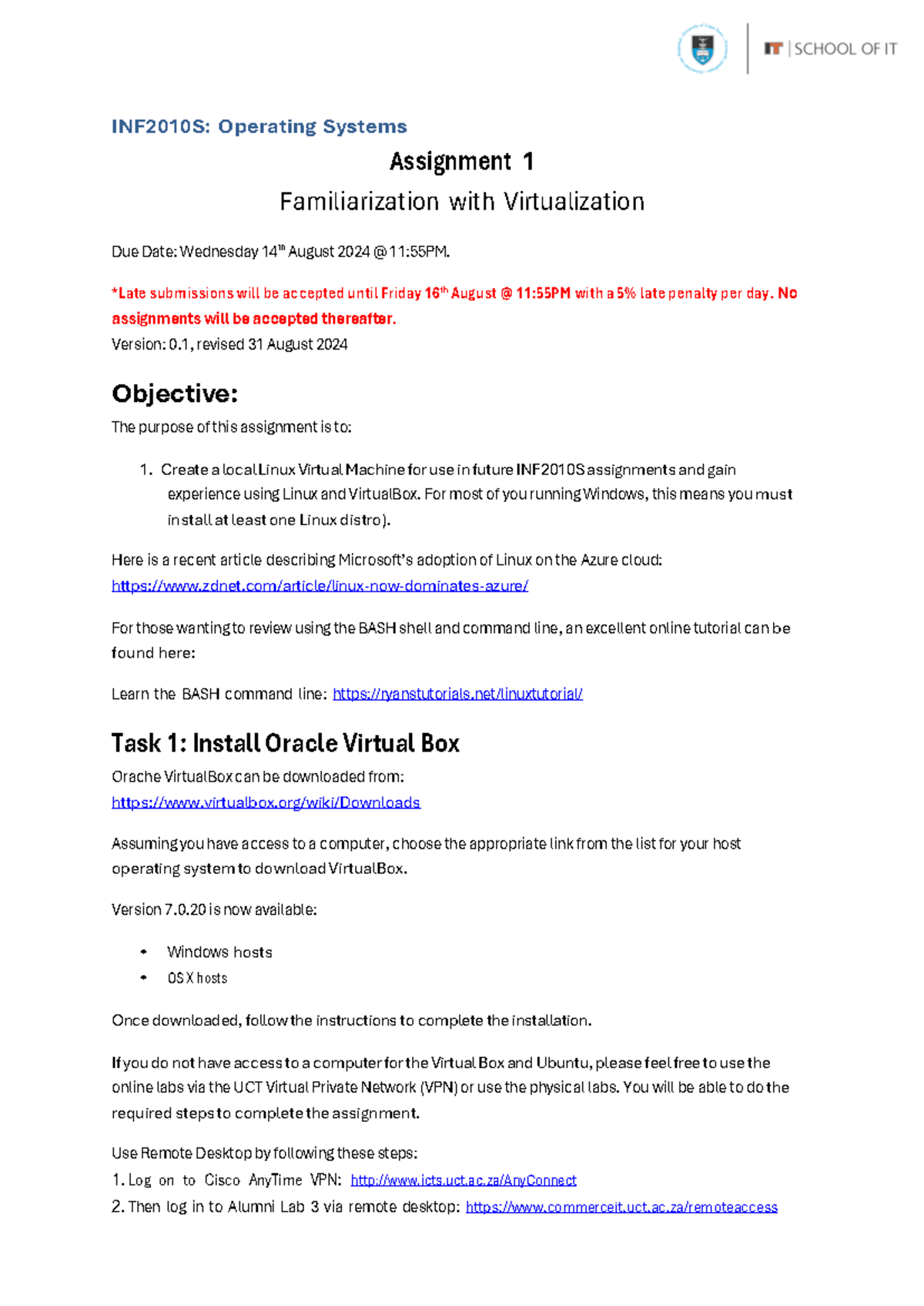 Virtualization Assignment INF2010 S 2024 - INF2010S: Operating Systems ...
