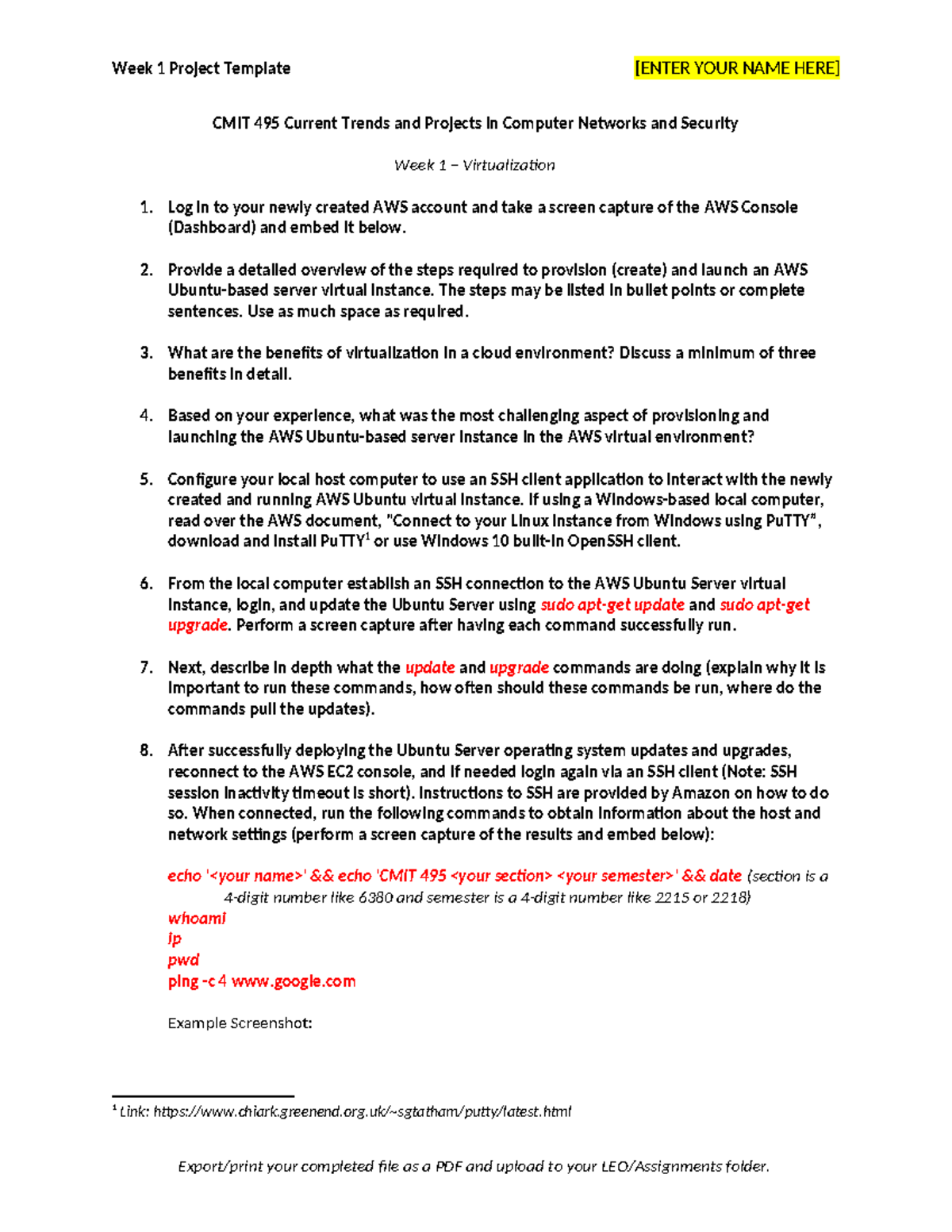 Virtualization Assignment.pdf - Week 1 Project Template CMIT 495 ...