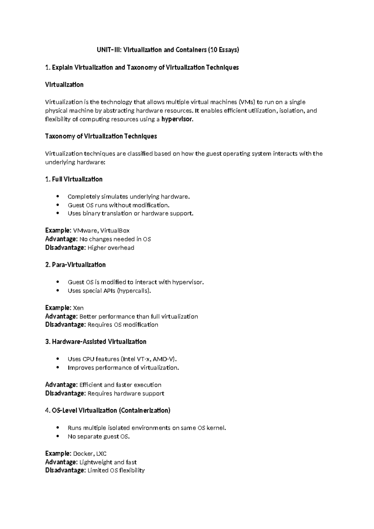 UNIT 3 CC - Virtualization and Containerization Overview (10 Essays ...