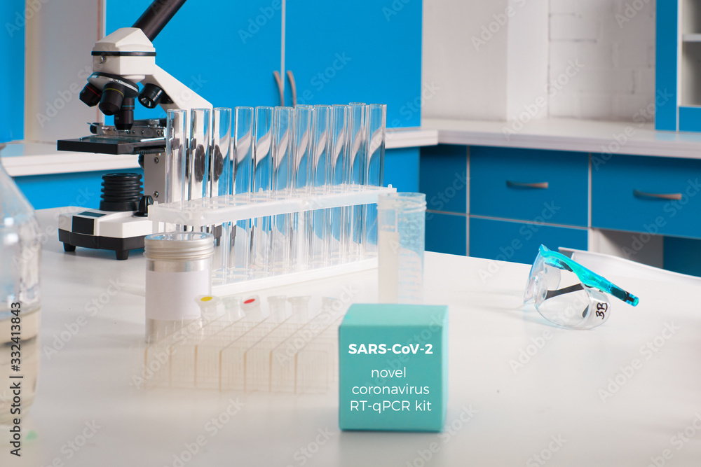 Detection of coronavirus. Laboratory interior, test lab, blood samples ...