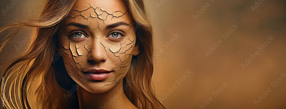 A woman's face artfully portrays the earth's arid conditions in a ...