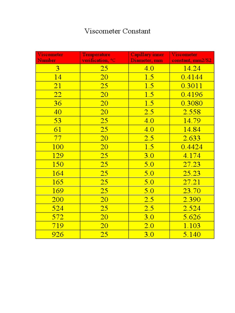 Viscometer Constant Table | PDF