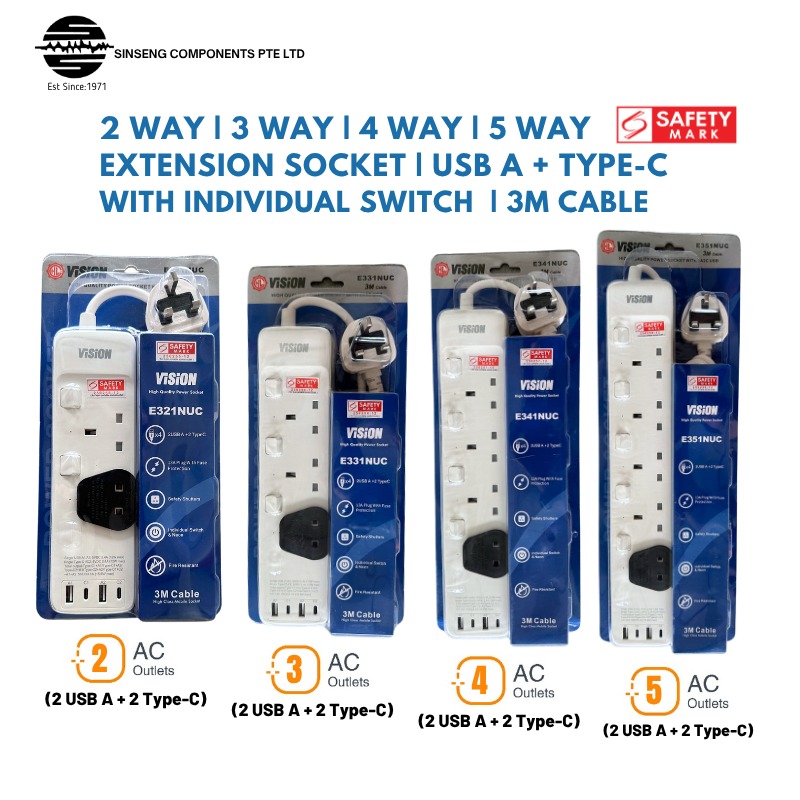 Vision MTS-E145 4 sockets with 3M Cable, TV & Home Appliances ...