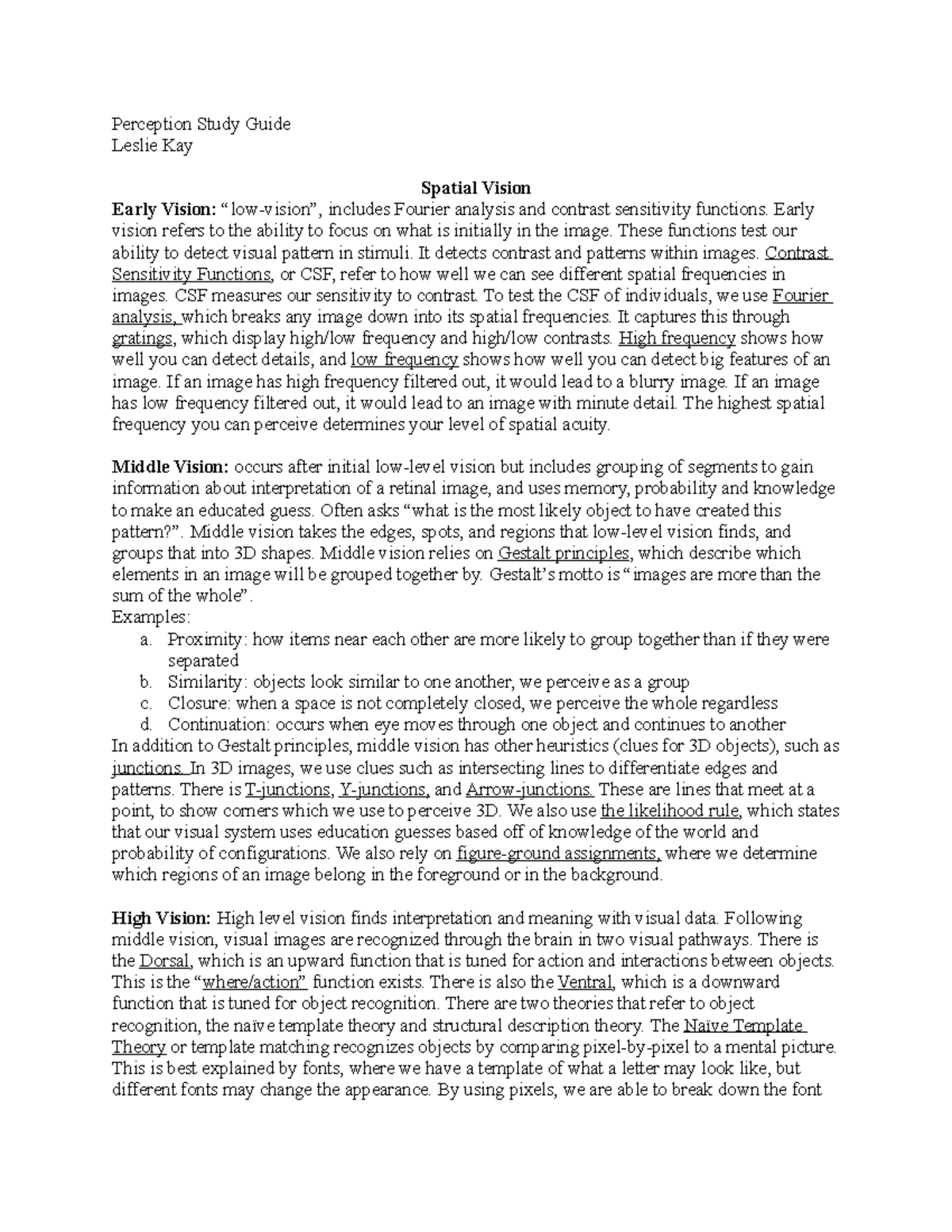 Perception Study Guide - Perception Study Guide Leslie Kay Spatial ...
