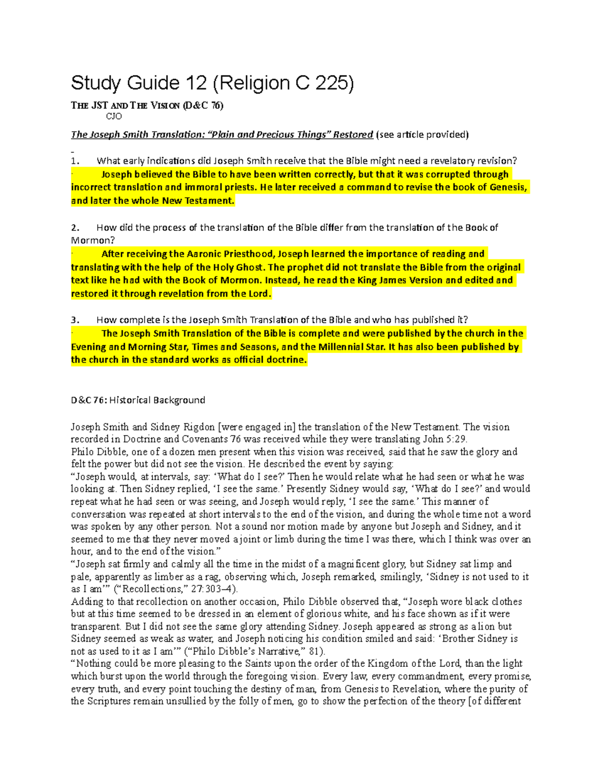 Joseph Smith Translation and the First Vision - Study Guide 12 ...