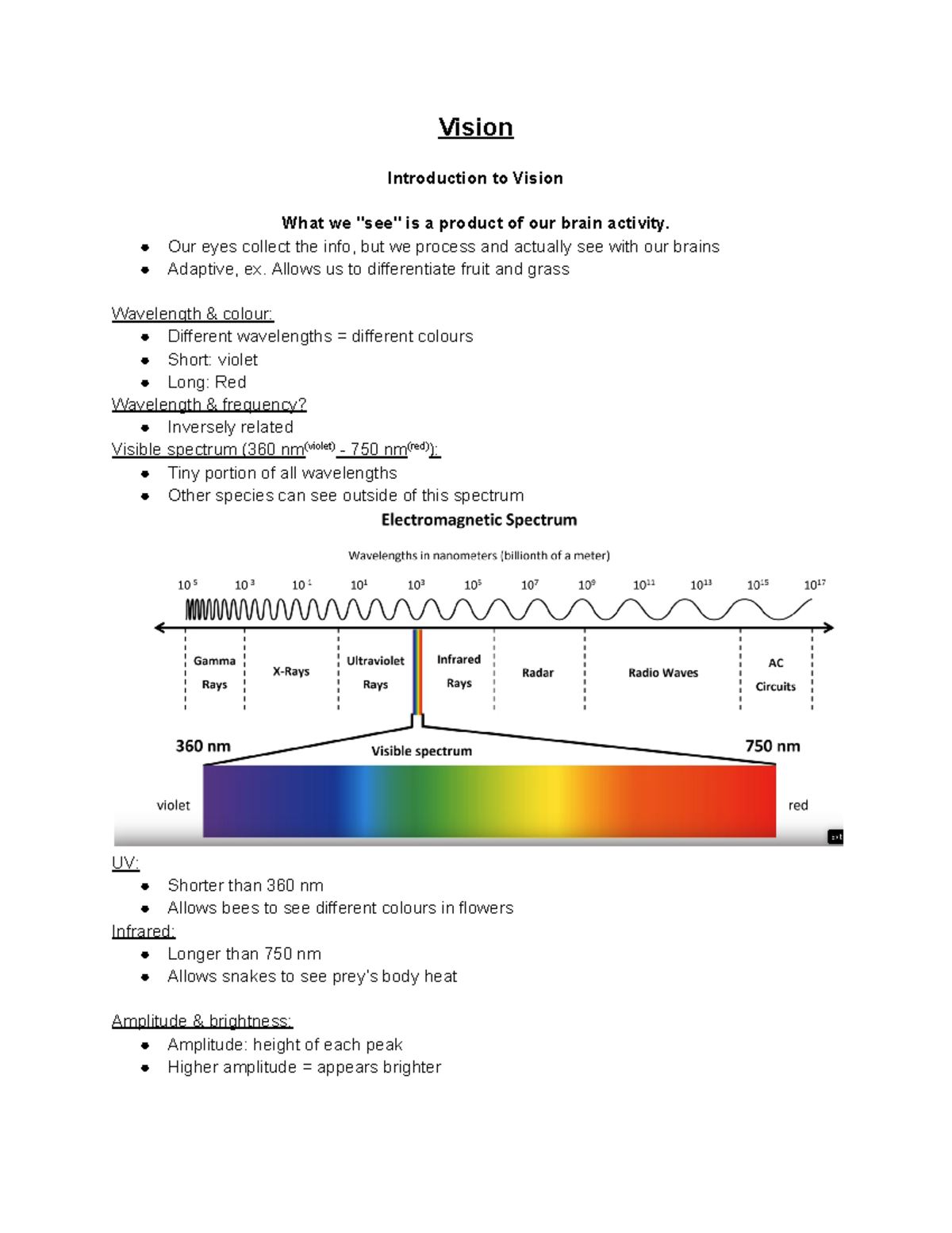 Vision Lecture Notes - VISION ( eye ³ brain ) week 5 Review Different ...