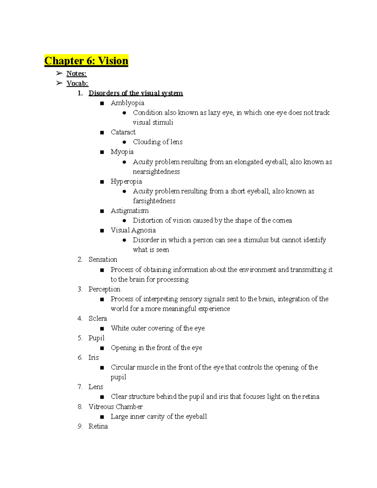 Psych 250; Part 2: Study Guide - Chapter 6: Vision Notes: Vocab: 1 ...
