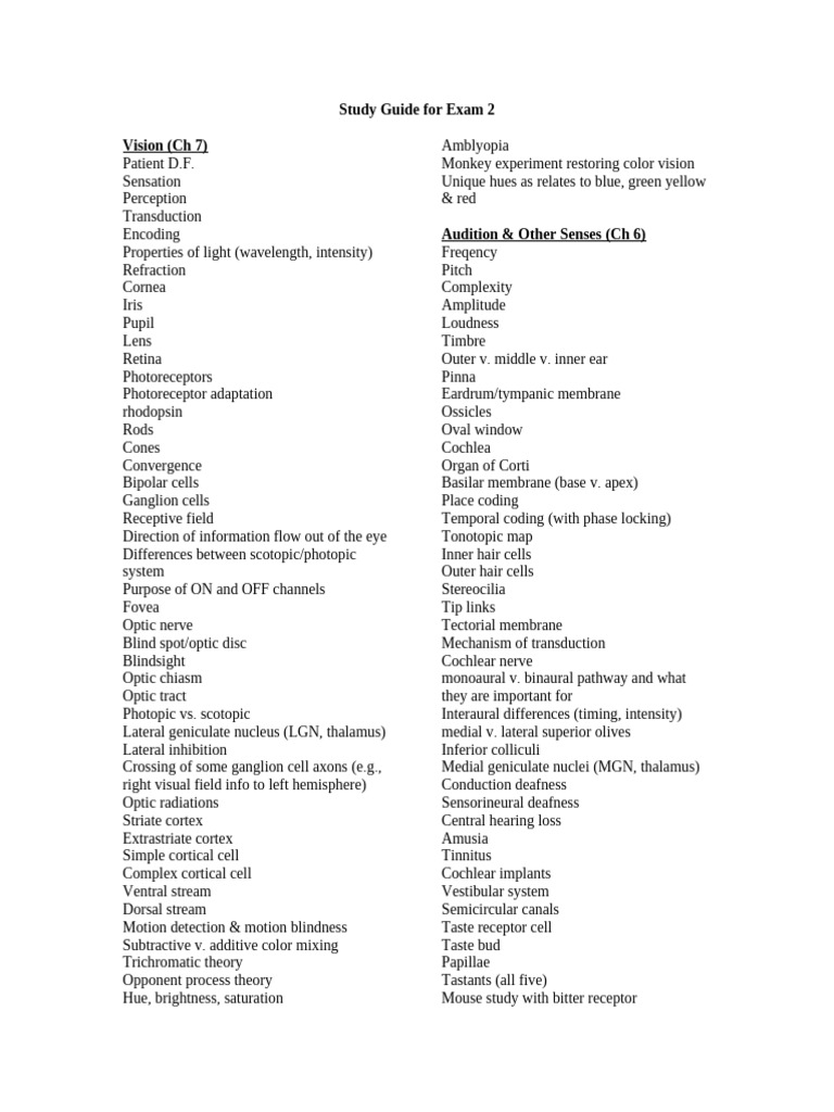 Vision and Sensation Exam 2 Study Guide | PDF | Senses | Visual System