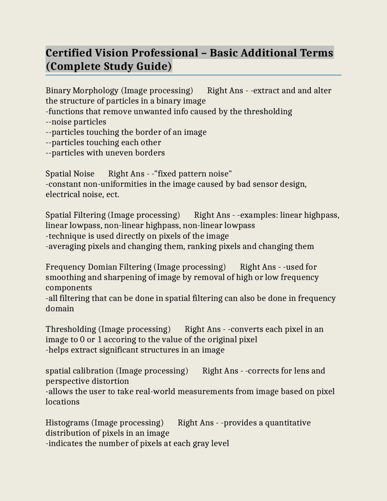 Certified Vision Professional – Basic Additional Terms Study Guide ...