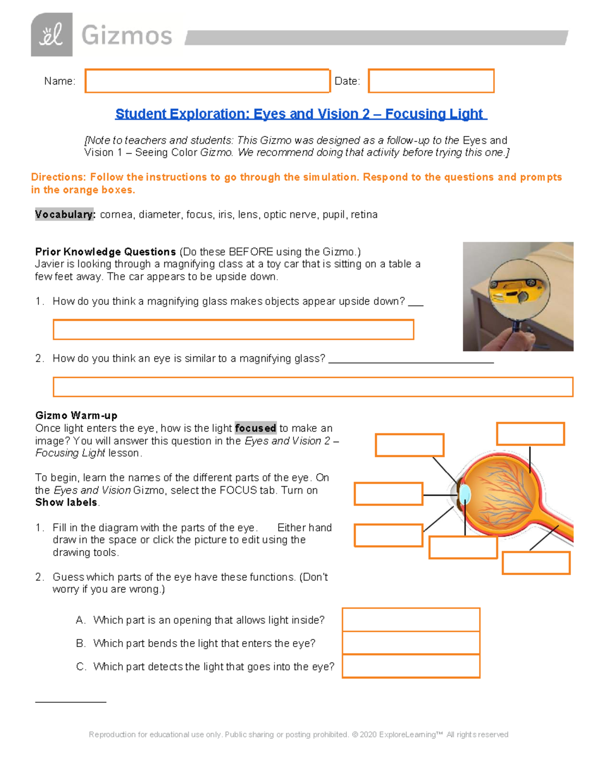 Eyes and Vision 2 (EV2) Focusing Light: Gizmo Exploration Guide - Studocu