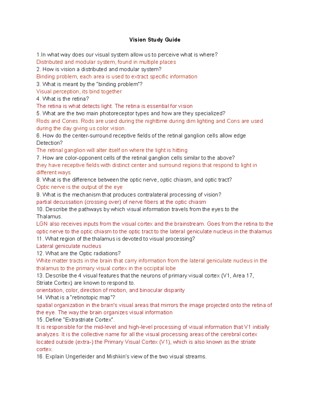 Vision Study Questions - Study Questions: Vision As a review - What is ...