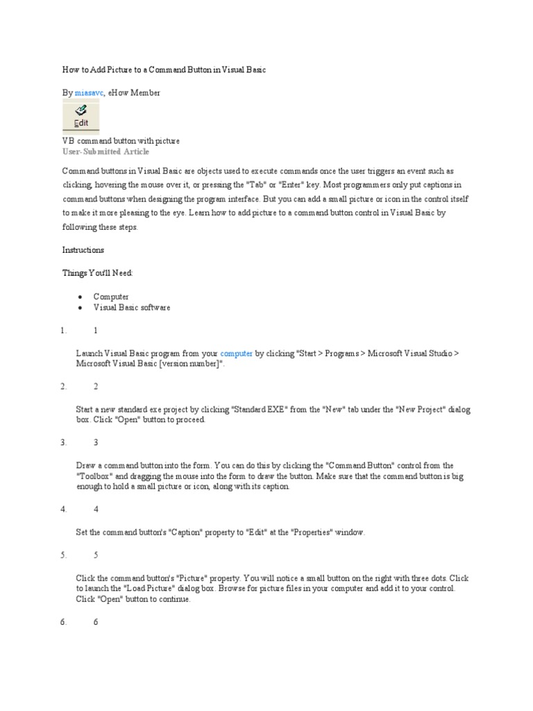 How To Add Picture To A Command Button in Visual Basic | PDF | Button ...