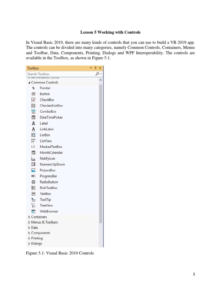 Lesson 5 Working With Controls | PDF | Visual Basic .Net | Software