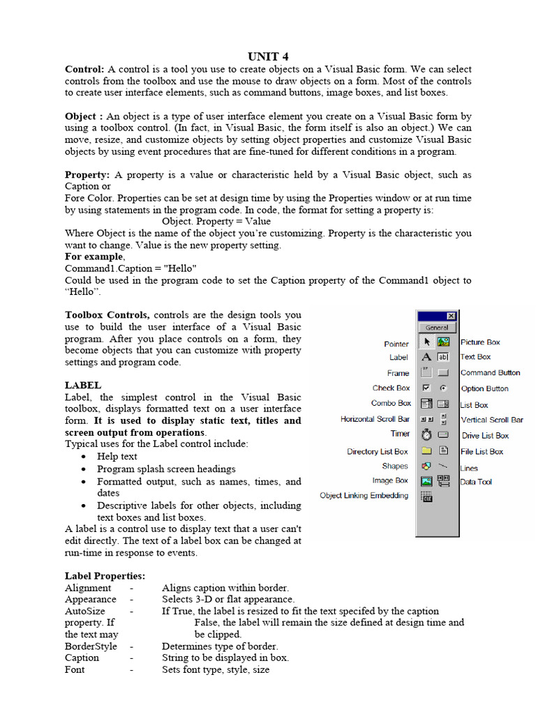 Csi Unit 4: Visual Basic Controls | PDF | Computer Programming | Button ...