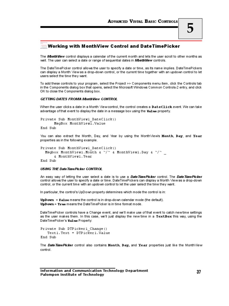 Visual Basic, Controls, and Events | PDF | Visual Basic .Net ...