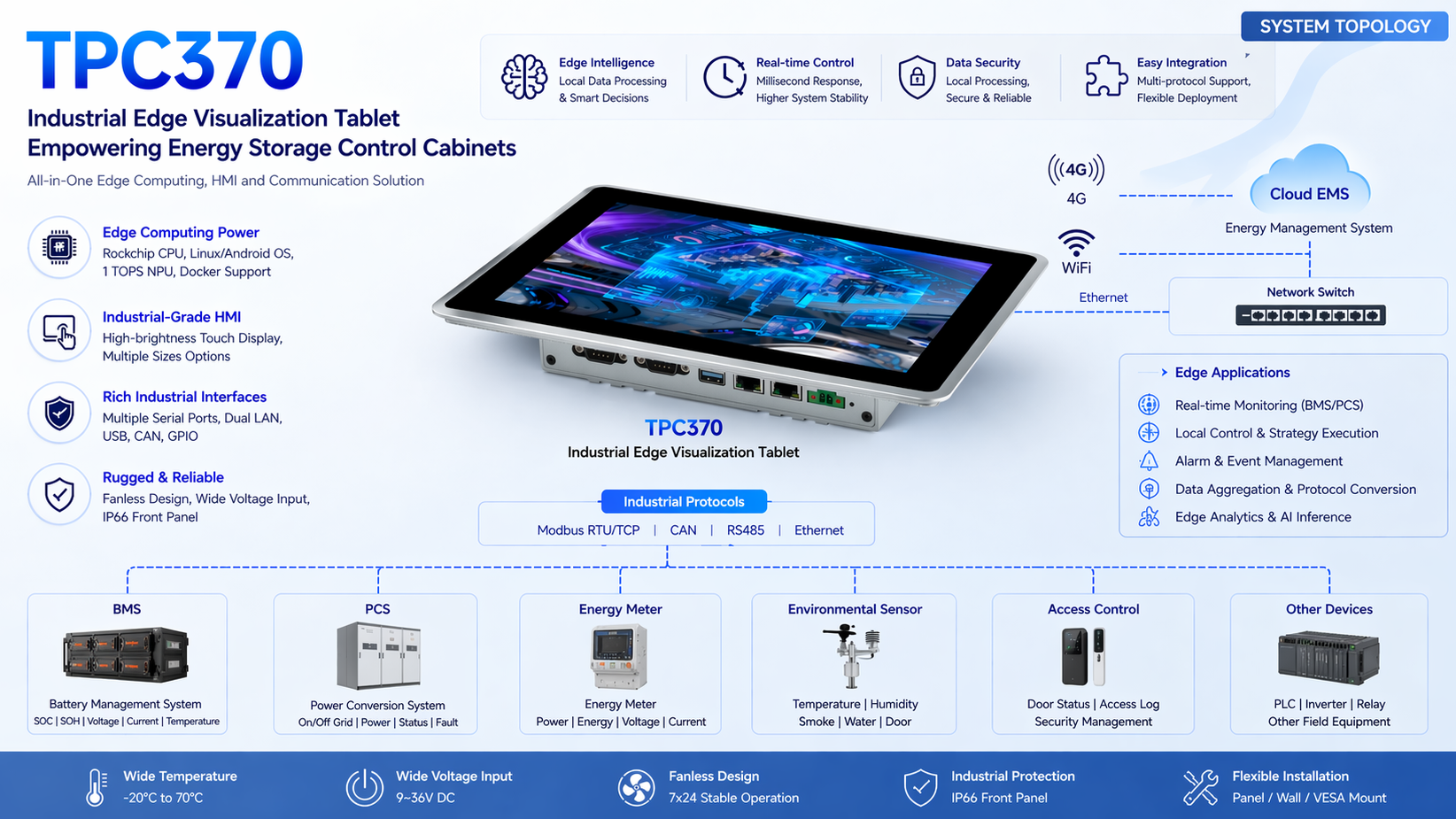 TPC370 Industrial Edge Visual Panel for Energy Storage Control Cabinet