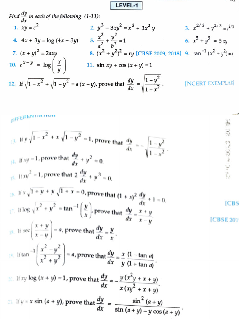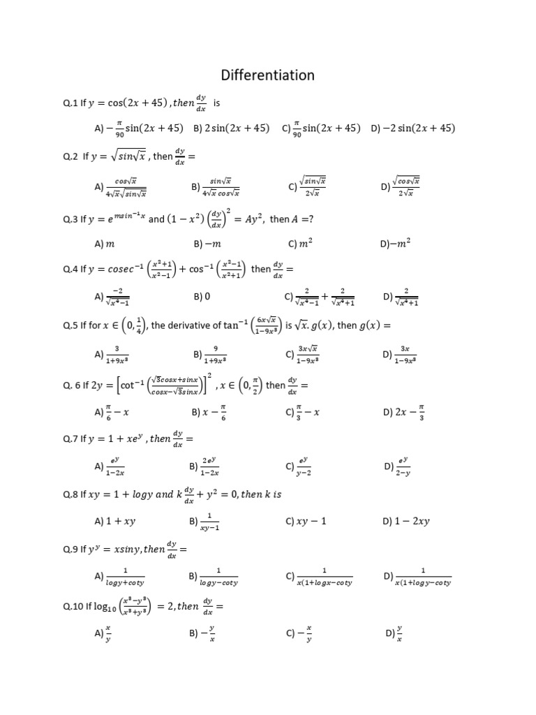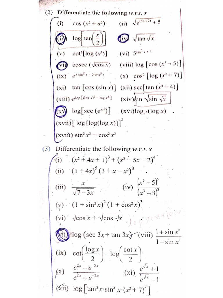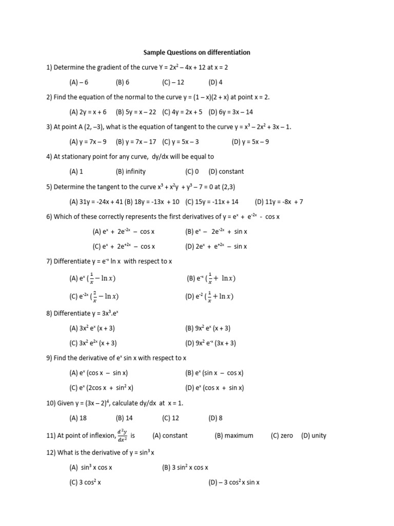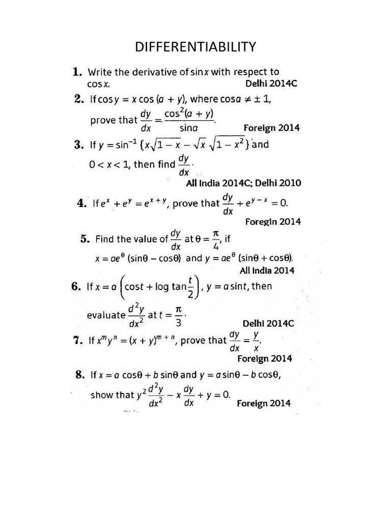 Class 12 – Differentiation – Differentiation Practice Questions (All ...