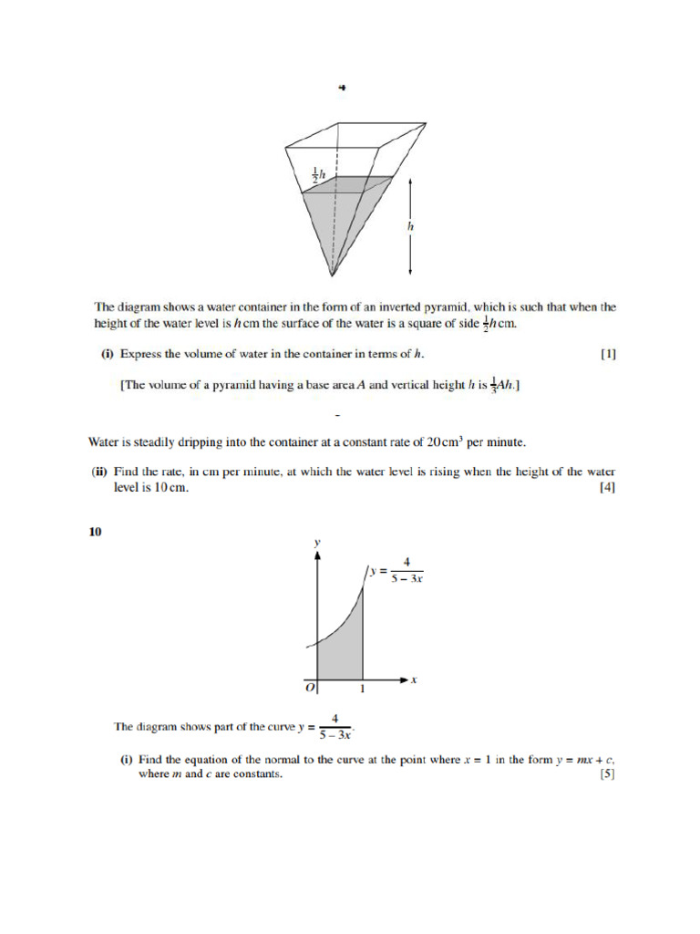 Differentiation Questions for iGCSE Additional Maths Cambridge (0606)