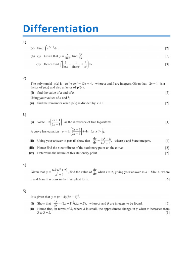 SOLUTION: Differentiation question worksheet 1 - Studypool