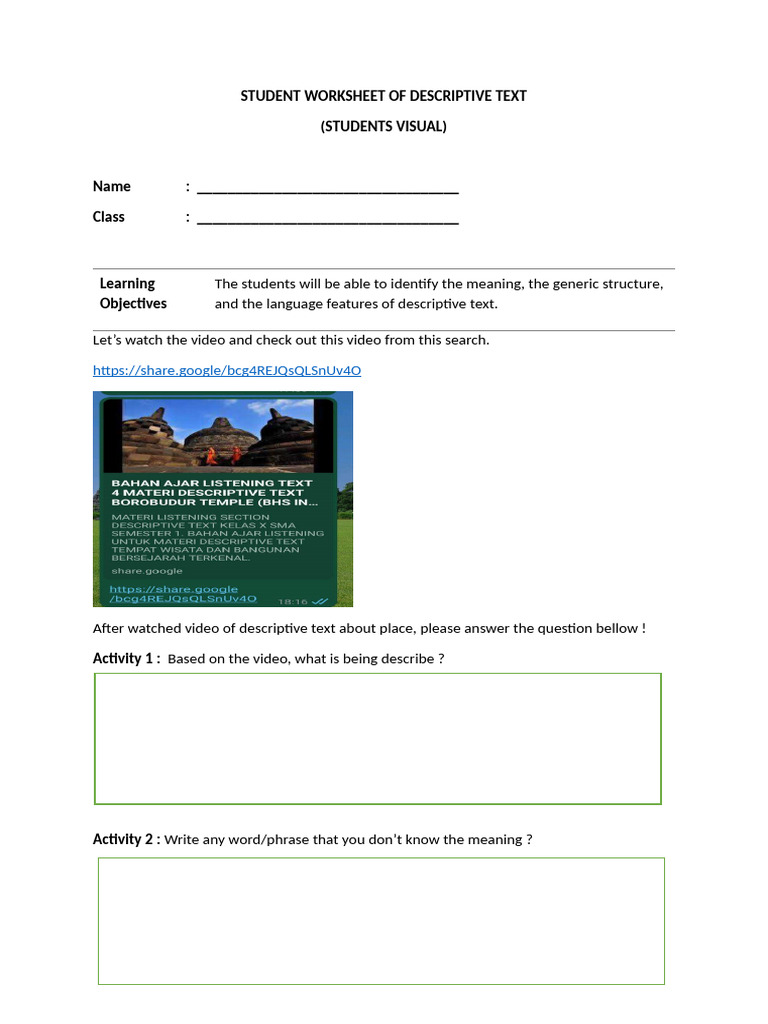 Visual Elements Digital Worksheet (editable) by sydney Carr | TPT