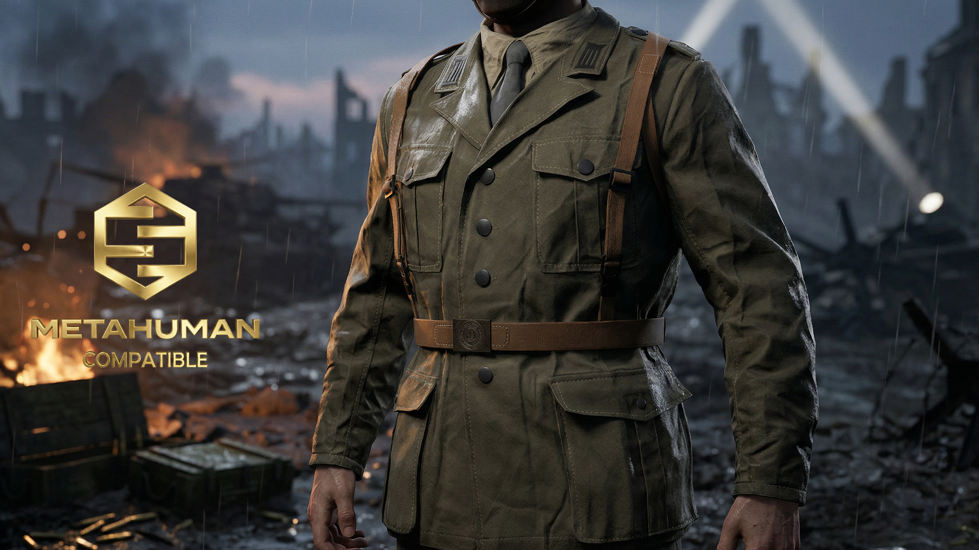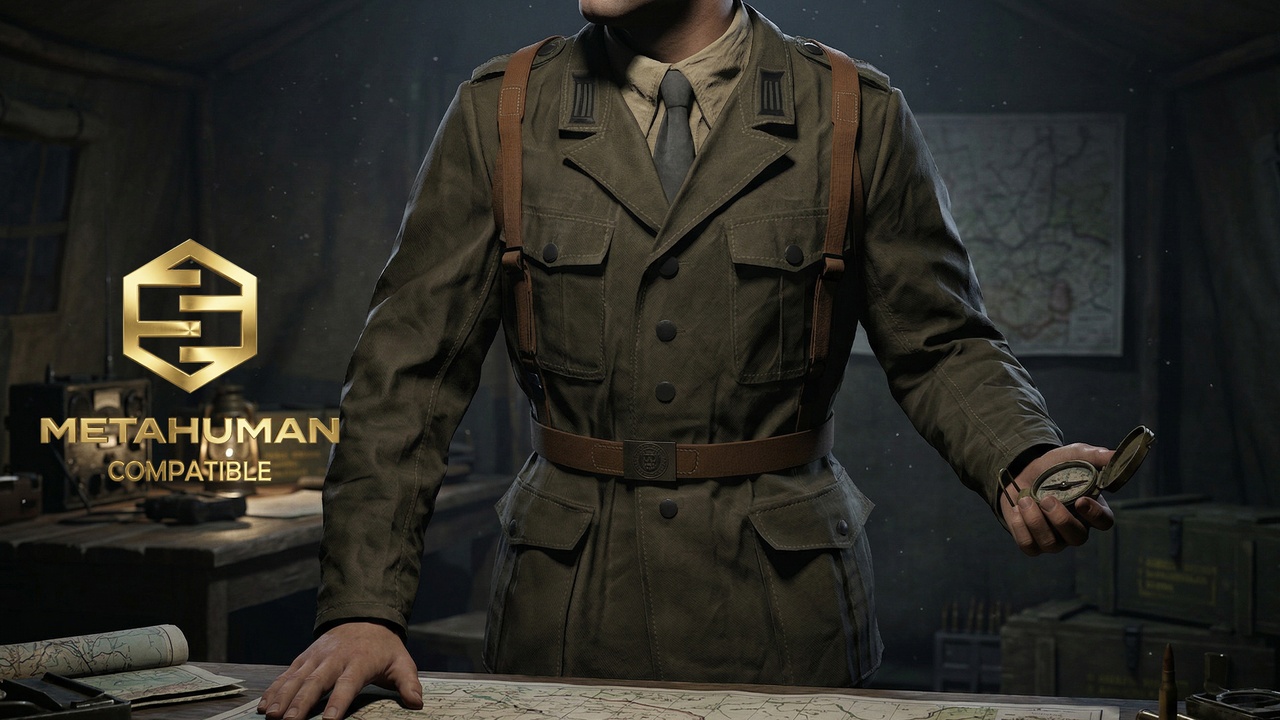 Olive Military Field Tunic Jacket with Structured Collar and Utility ...