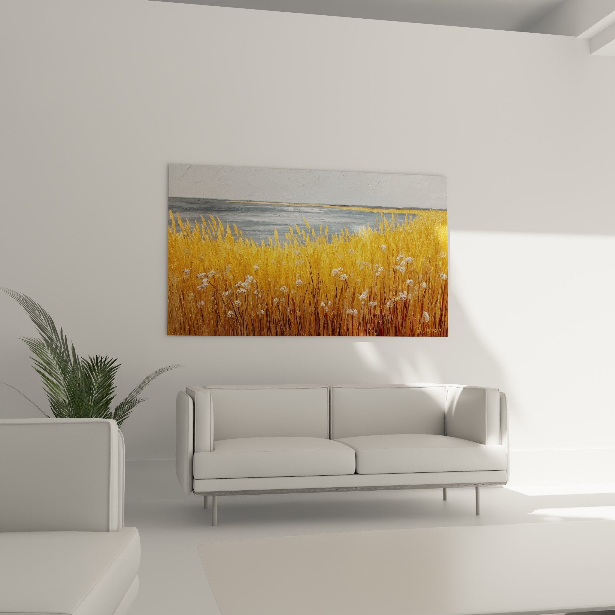 Golden Meadow Wall Art with White Grain - Autumn Field