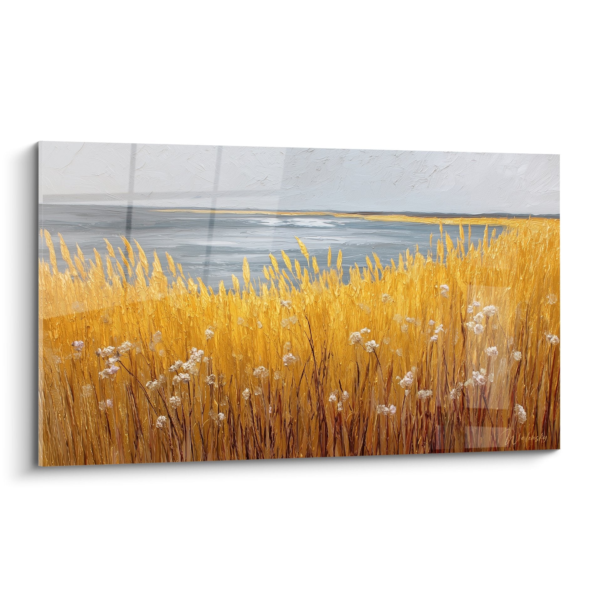 Coastal Meadow Wall Art with Golden Daisies - Grasses