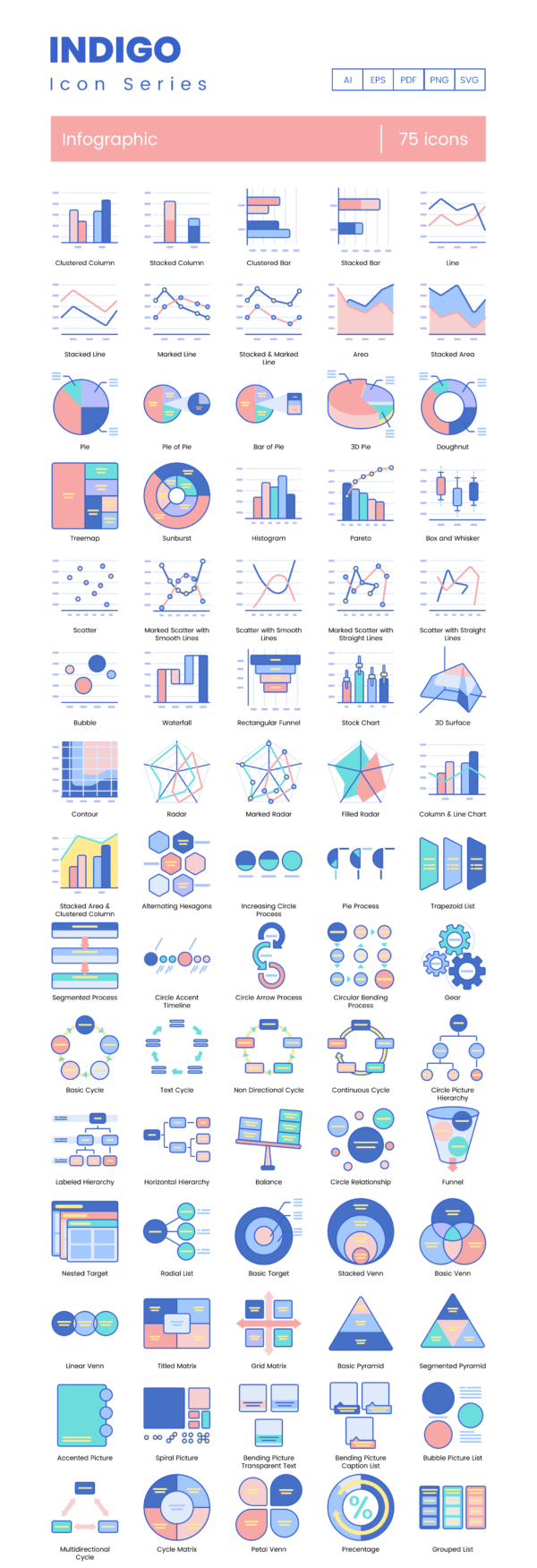 75 Visual Data Icon Set - Flat Icons