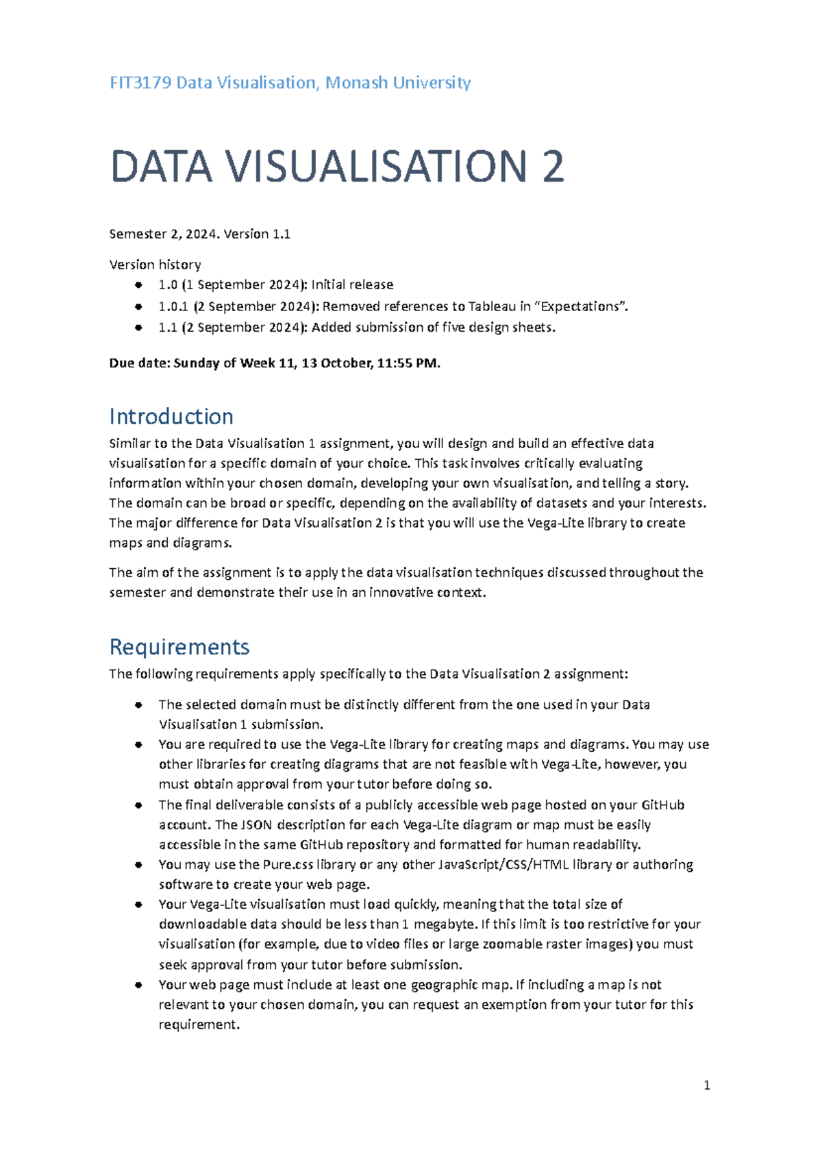 FIT3179 Data Visualisation 2 - Version 1. Version history 1 (1 ...