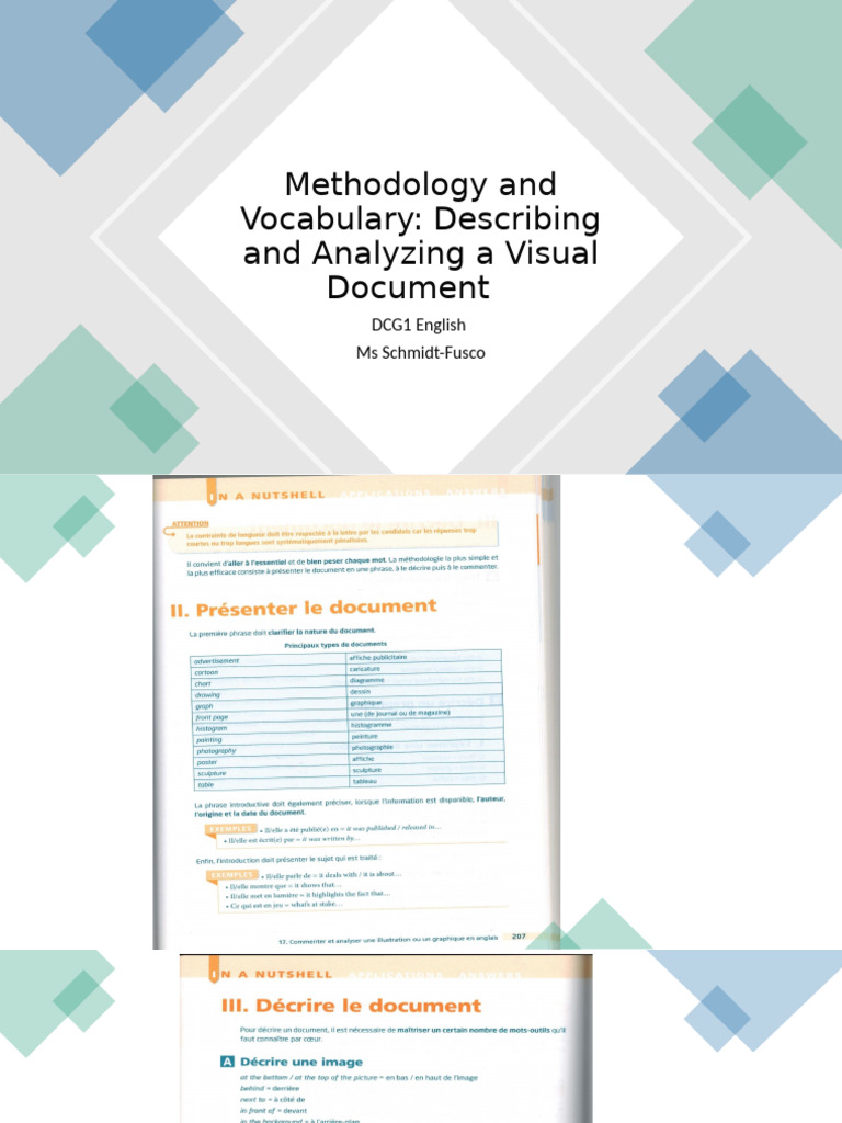 Analysing a visual document Answering A and B