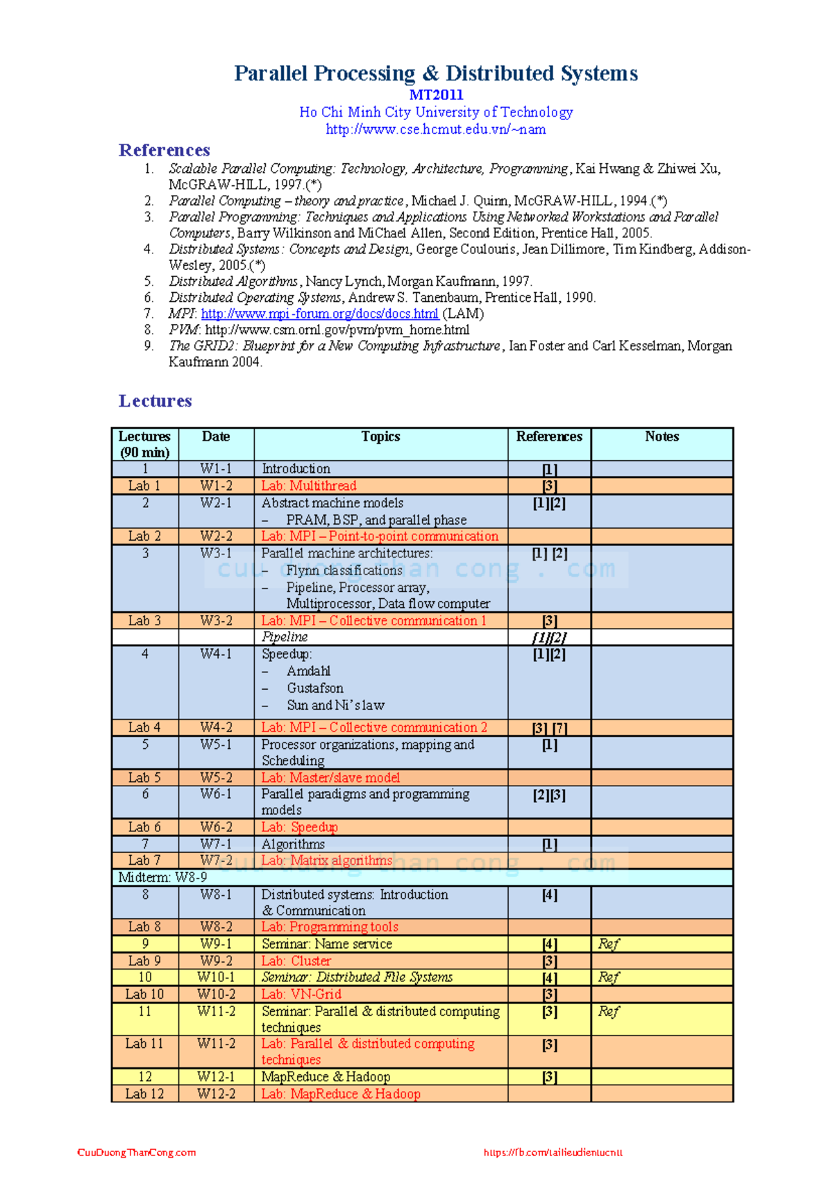 Parallel Processing & Distributed Systems MT2011 - Lecture Notes - Studocu