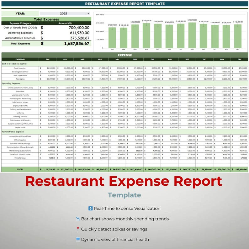 Restaurant Expense Report Template | Google Sheets Cost Dashboard - Etsy