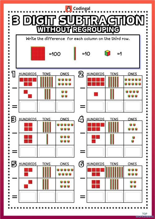 Three Digit Subtraction with and without regrouping | Teaching ...