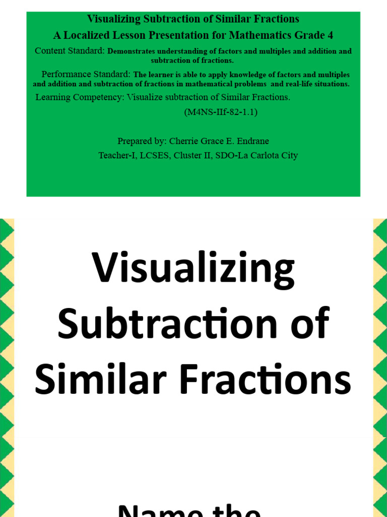 Grade 4- Visualizing subtraction of fractions, SDO-La Carlota City ...