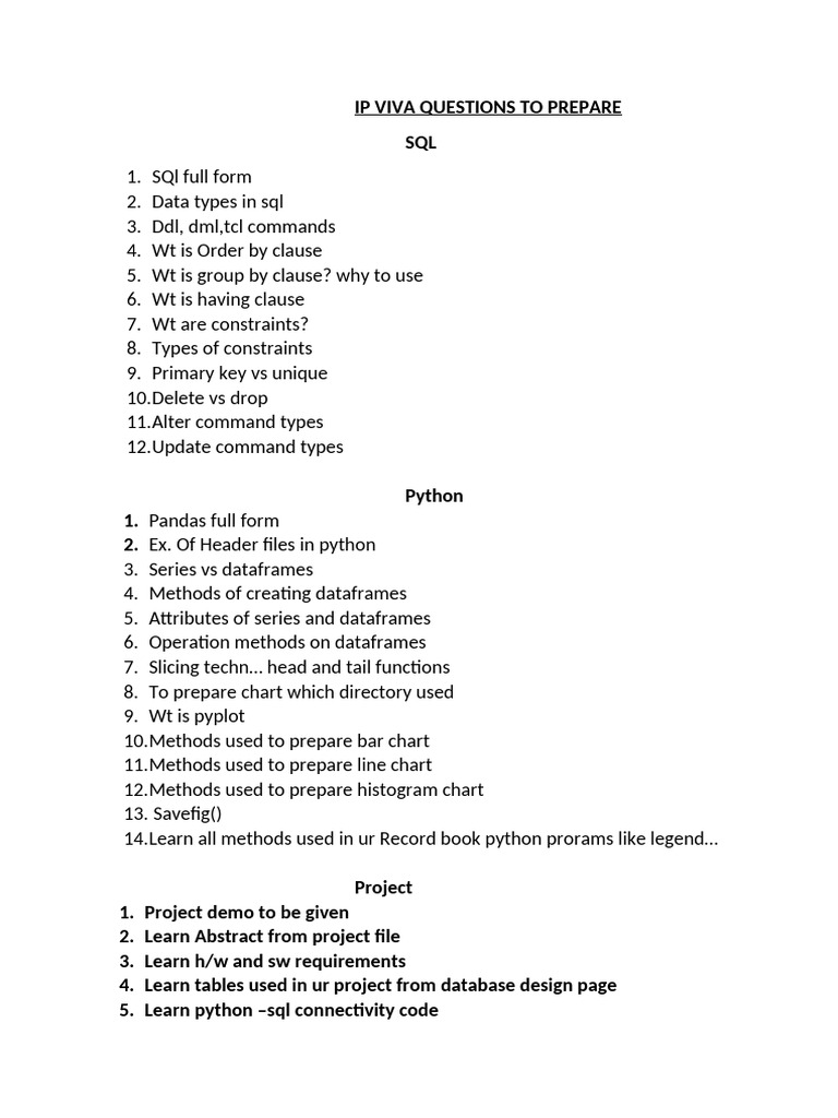 Computer Science Viva Questions Class 12 Python at Stacey Friedman blog