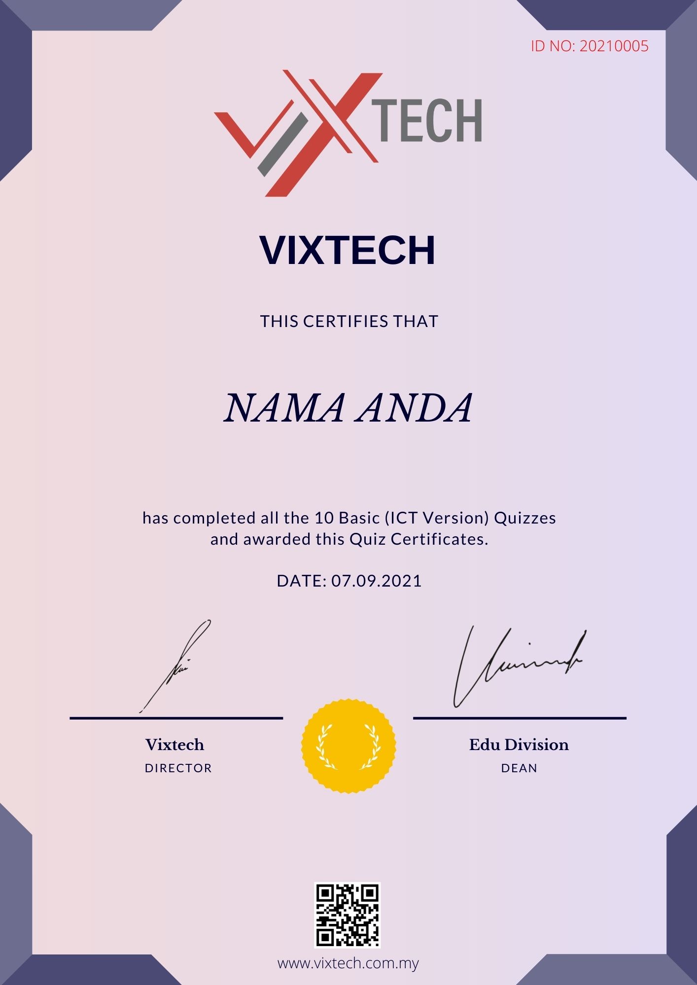 Done ICT quiz with Vixtech ! | Nur Husna Rodzi