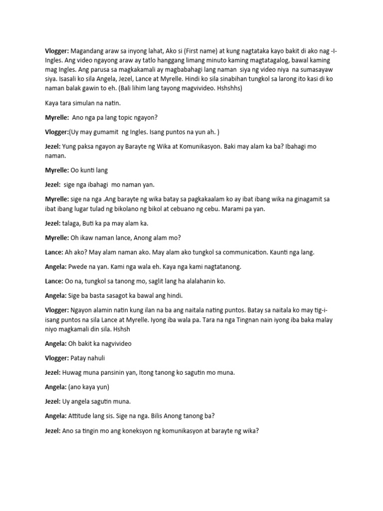Mini Vlog Script Tagalog Version | PDF