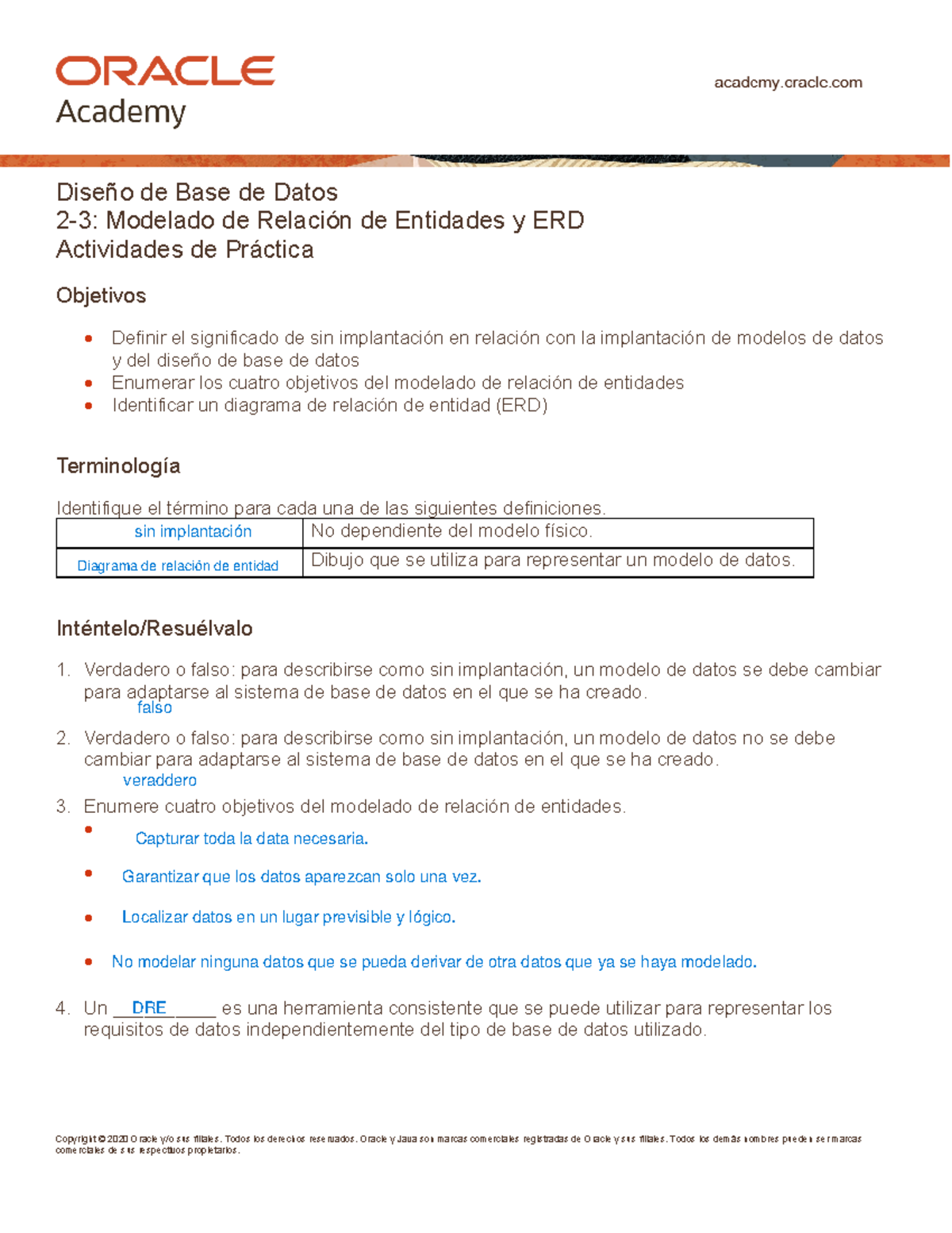 Modelado de Relación de Entidades y ERD 3 - Copyright © 2020 Oracle y/o ...
