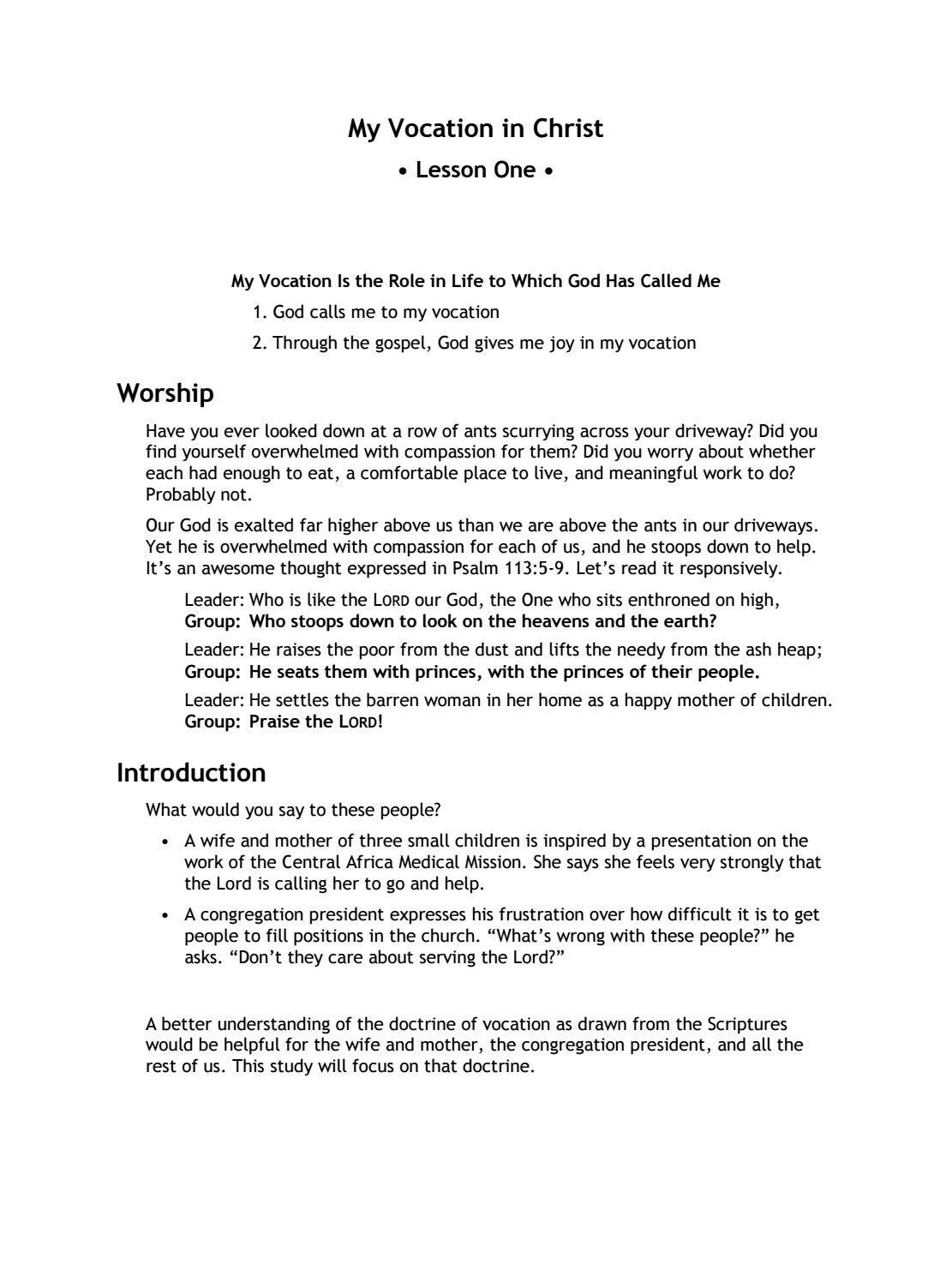 My Vocation in Christ - Lesson 1 by gracelutheransaz - Issuu