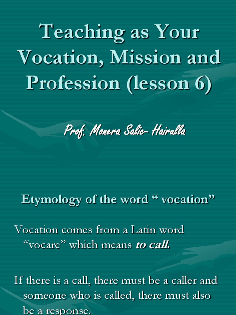 Teaching as your vocation, mission and profession | PPTX | Professional ...