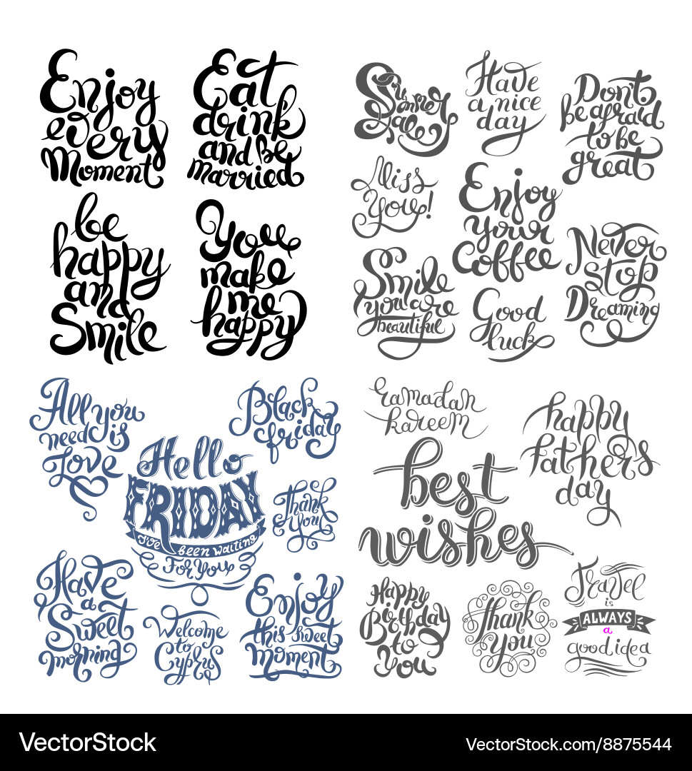 hand-drawn lettering typography. Set of inscription and motivational ...