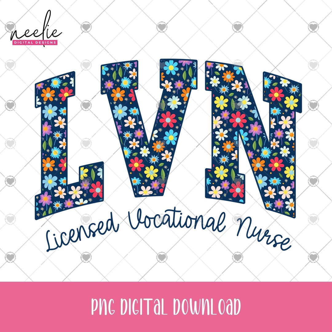 LVN Licensed Vocational Nurse Varsity Flower Letters PNG File, Floral ...