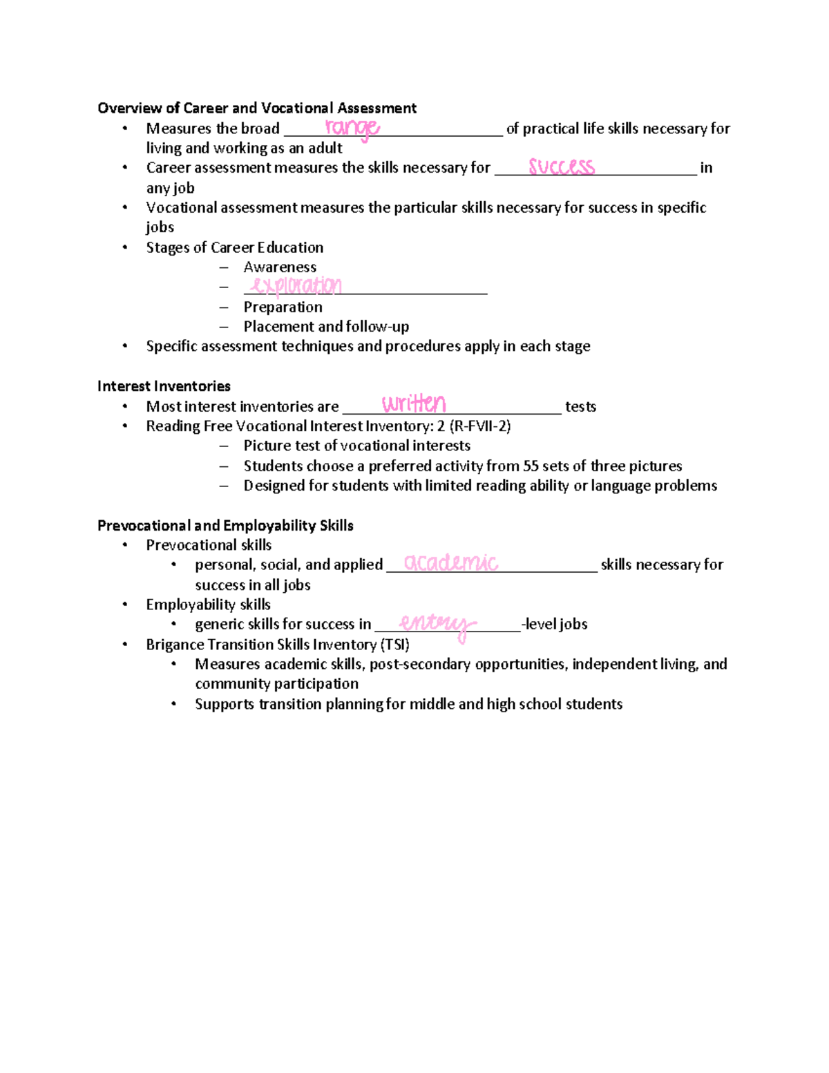 Career and vocational assessment - Studocu
