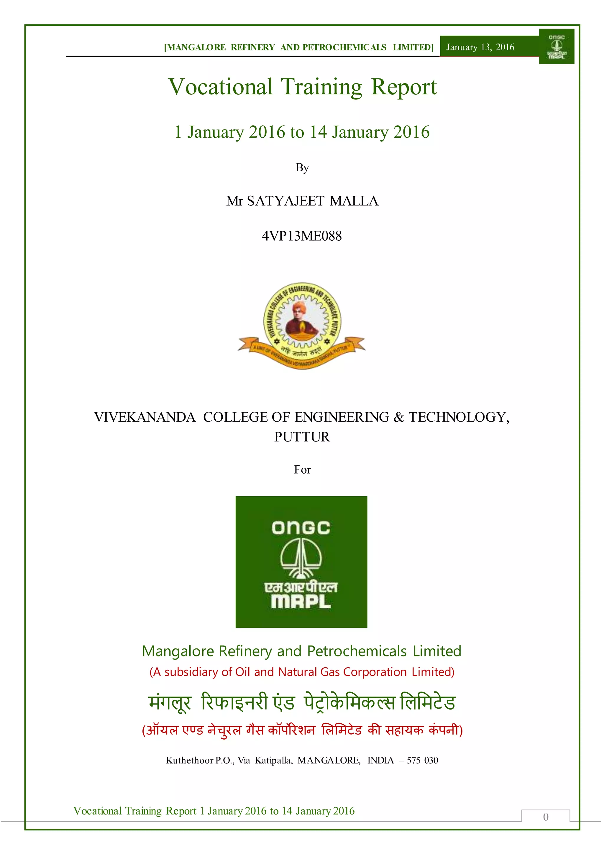 MRPL Vocational Training Report | DOCX
