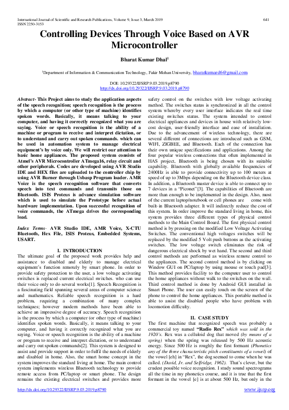 (PDF) Controlling Devices Through Voice Based on AVR Microcontroller