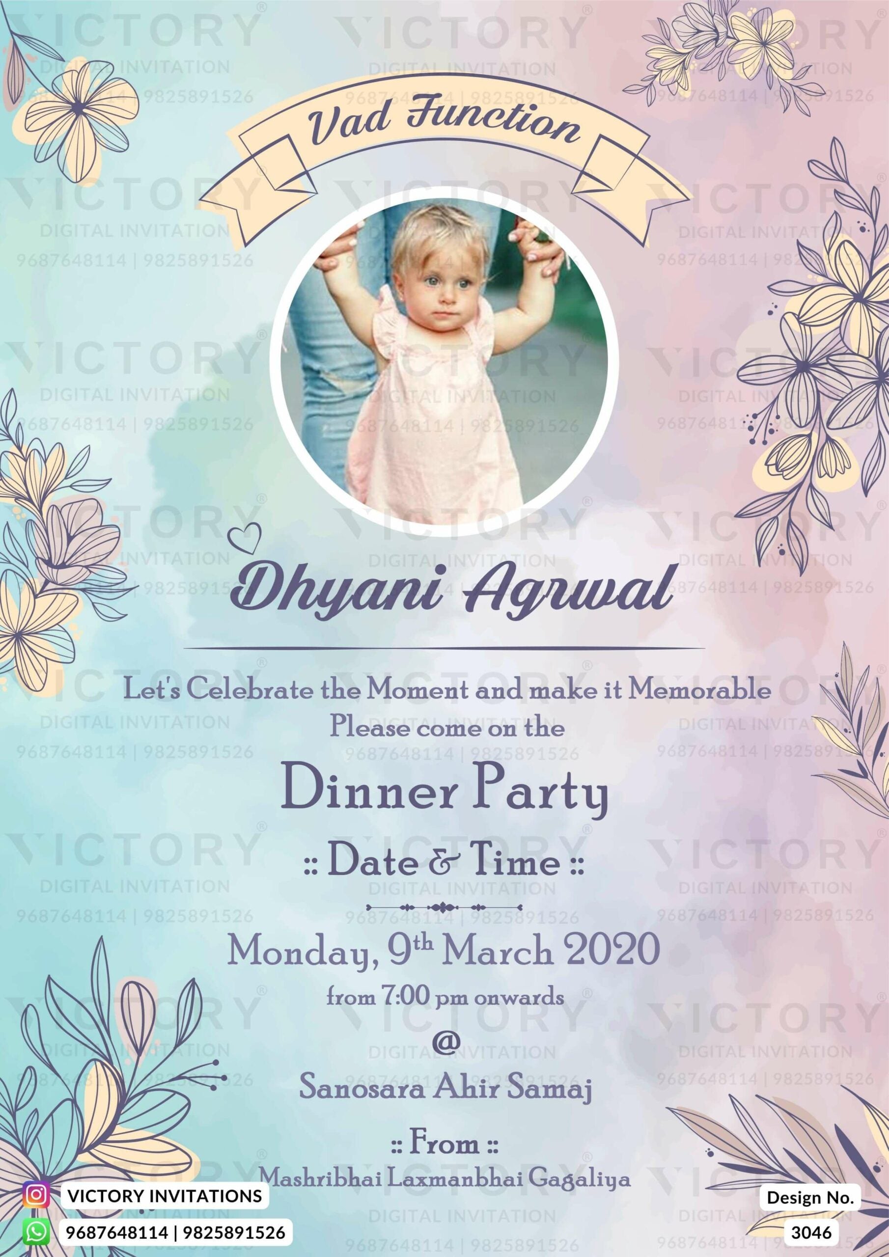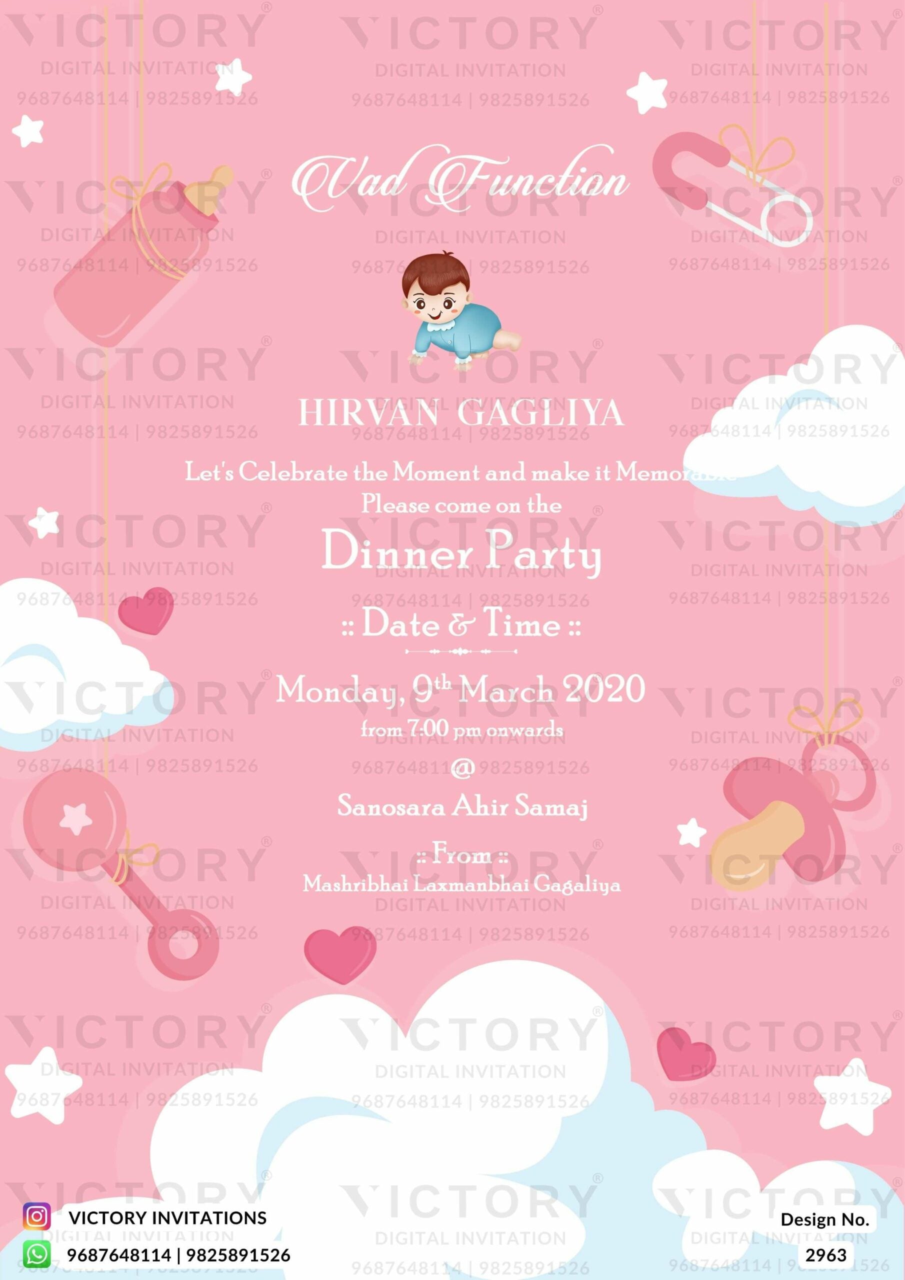 Vad Ceremony invitation card in english language with baby image as ar ...