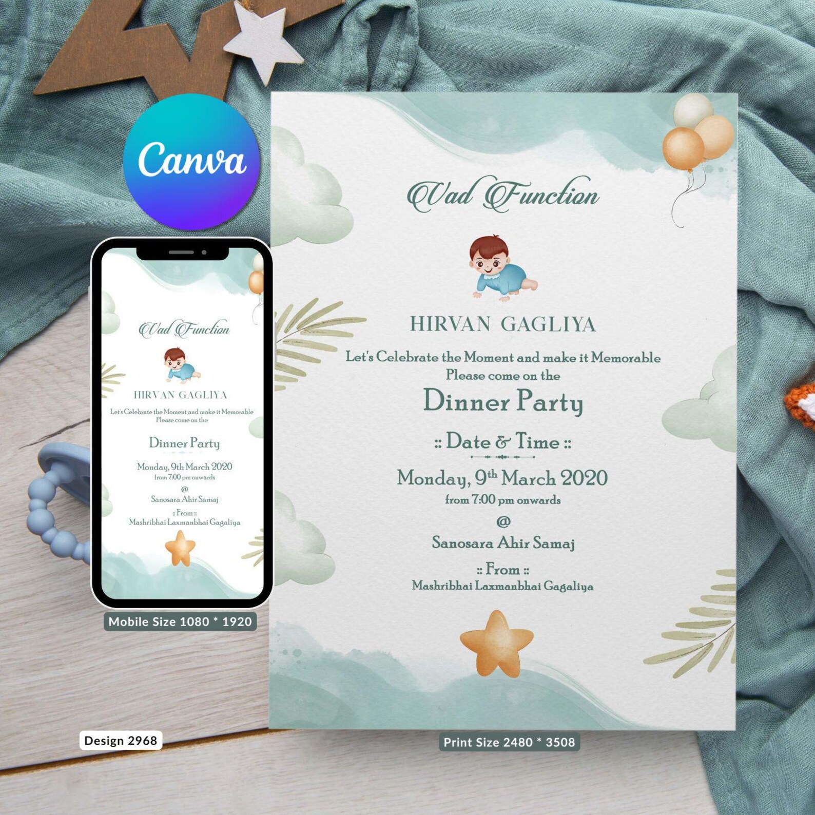 Vad Ceremony Invitation Card in Minimalistic Theme Canva DIY Editable ...