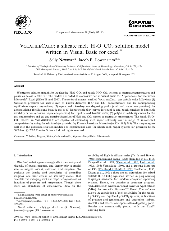 (PDF) VolatileCalc: a silicate melt–H2O–CO2 solution model written in ...