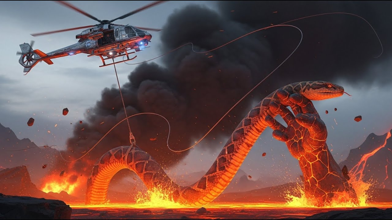 Python snake coiled on Piton de la Fournaise volcano on Craiyon