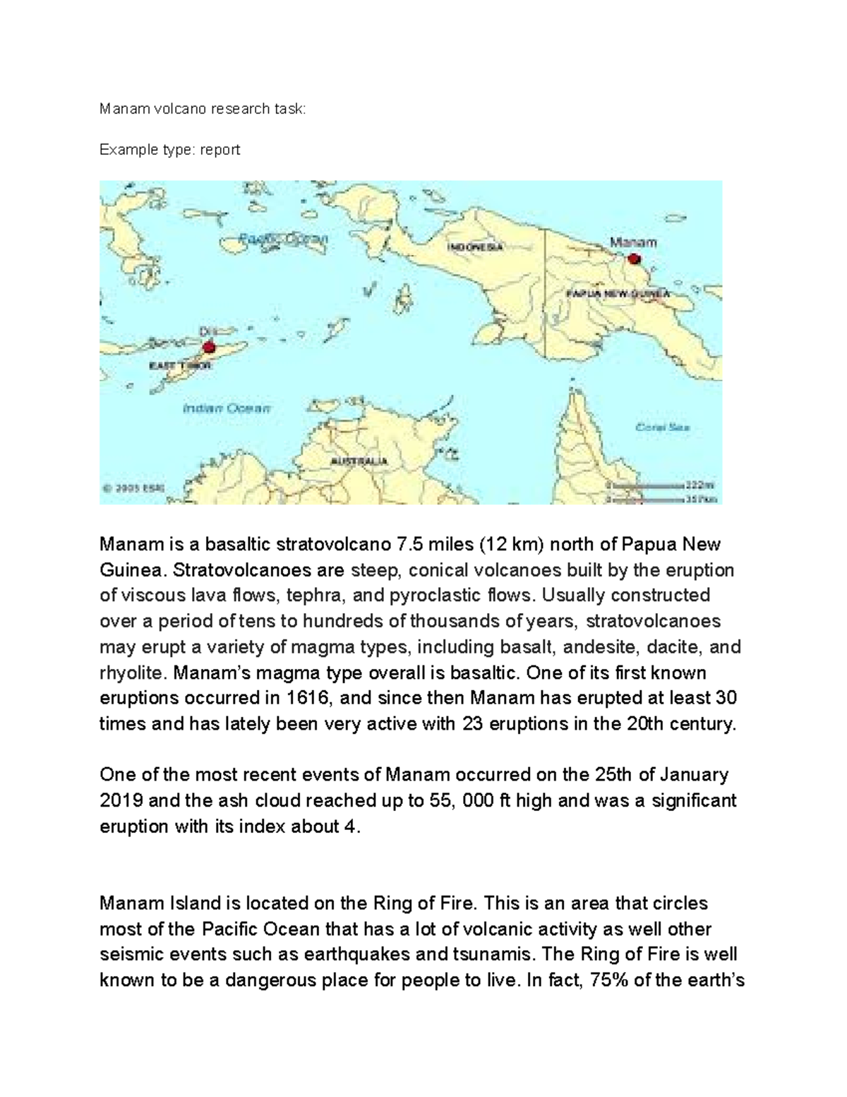 Volcanos assignment manam GRP2 - Manam volcano research task: Example ...